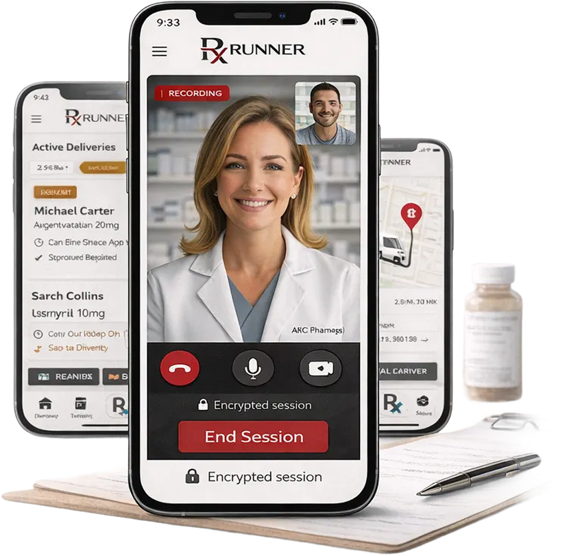 Thousands of pharmacies rely on RxRunner for secure and efficient prescription delivery and patient consultations.
